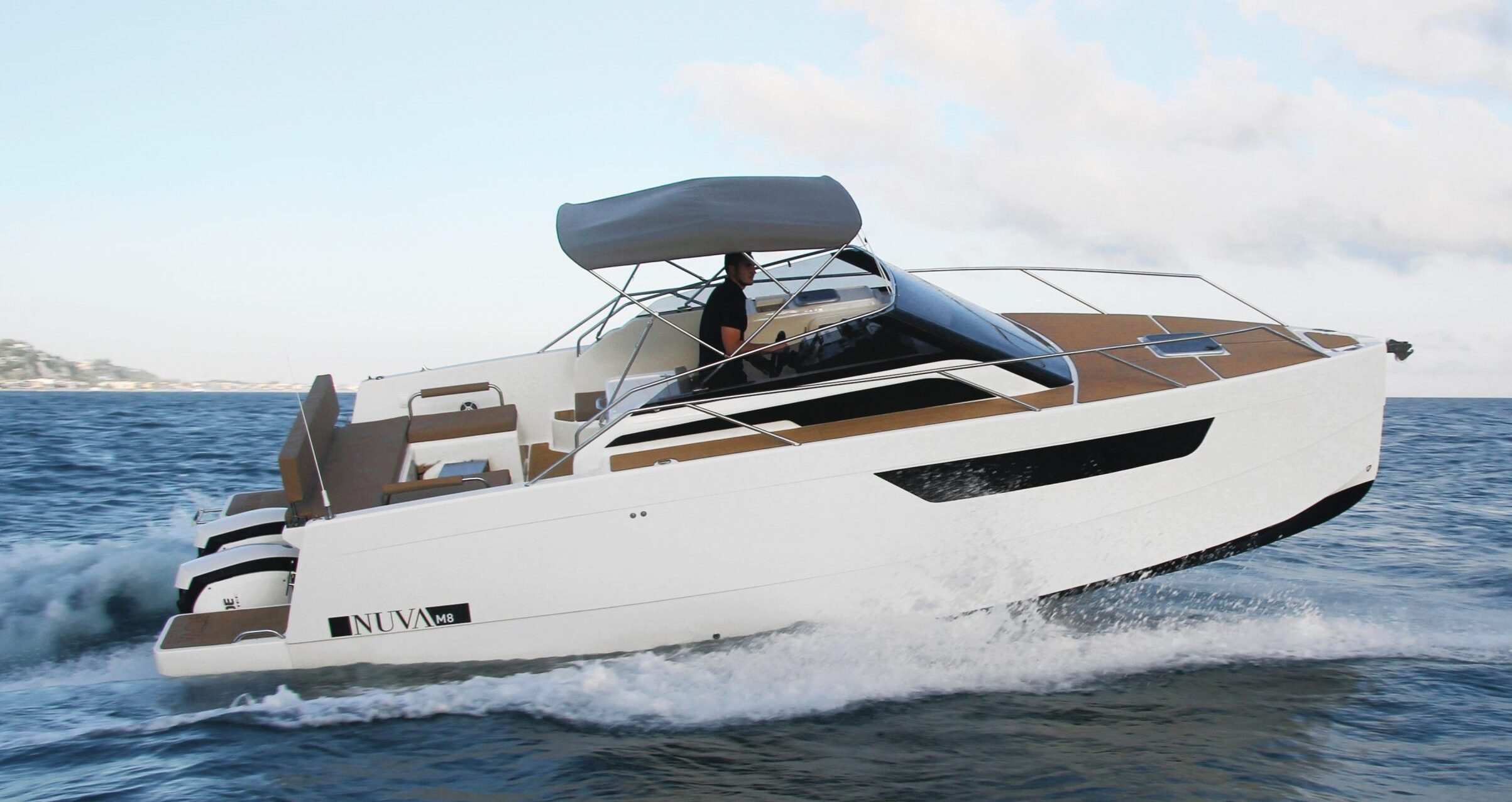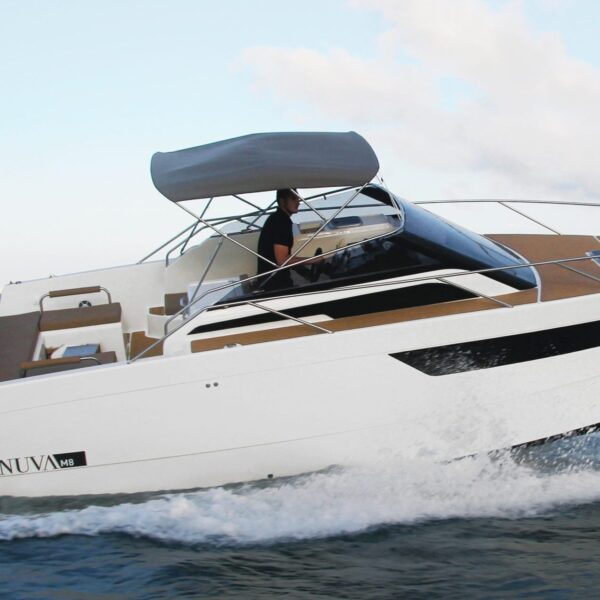 Natürlich ist die Nuva 9 Cabin ein modernes Boot, schön anzusehen und vor allem besonders schön. Als Motor werden zwei 150-PS-Motoren empfohlen, wobei die Höchstgeschwindigkeit 35 Knoten und die Reisegeschwindigkeit 22 Knoten beträgt.