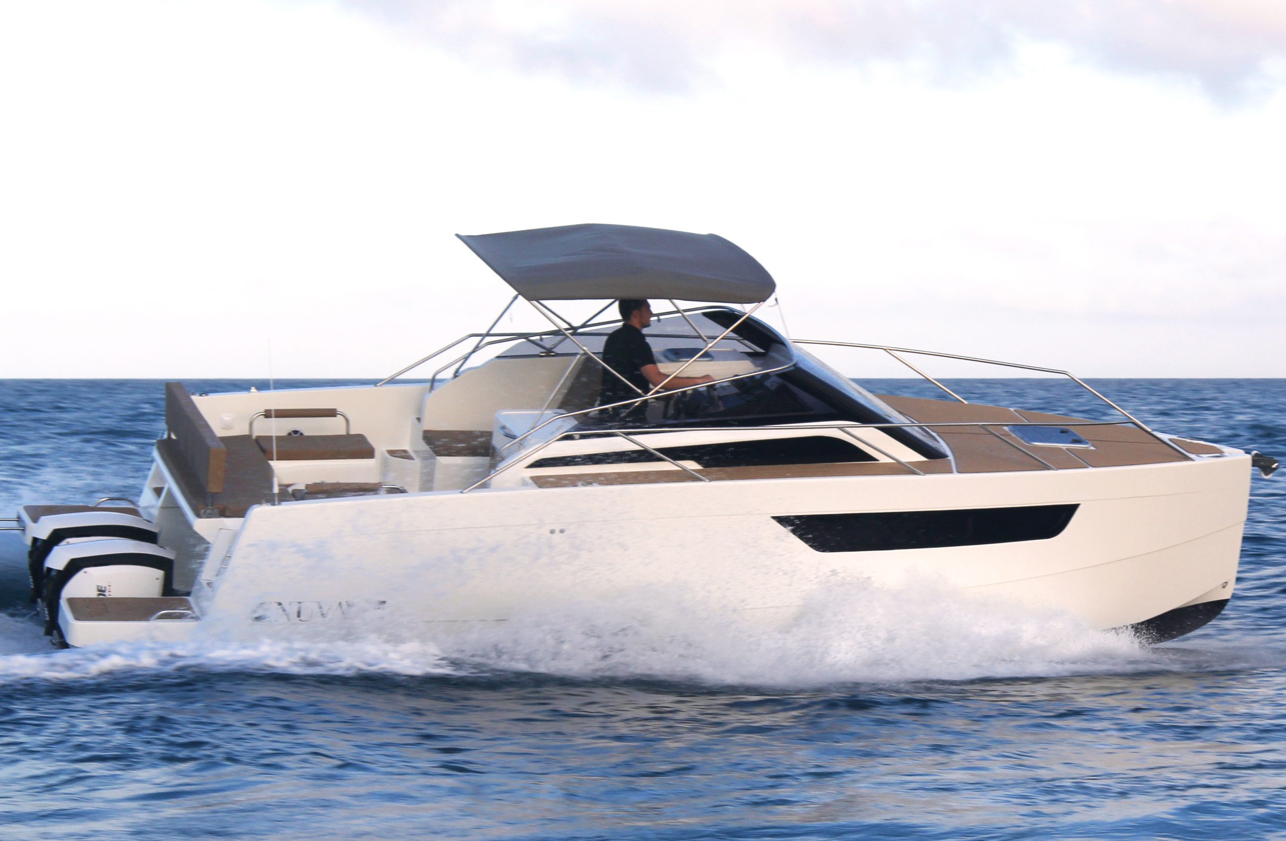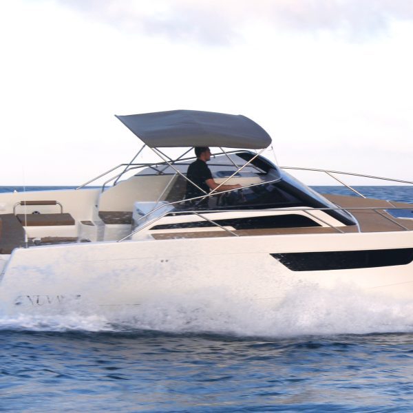 Die Nuva 9 Cabin ist zweifellos ein modernes, optisch ansprechendes und vor allem außergewöhnlich schönes Boot. Die empfohlene Motorisierung besteht aus zwei 150-PS-Motoren, wodurch eine Höchstgeschwindigkeit von 35 Knoten und eine Reisegeschwindigkeit von 22 Knoten erreicht werden.